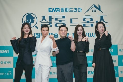 ENA 새 월화드라마 '살롱 드 홈즈'가 16일 첫 방송된다. 이에 배우 이시영 정영주, 민진기 감독, 김다솜 남기애(왼쪽부터)가 방송 전 제작발표회를 열고 다양한 이야기를 전했다. /ENA