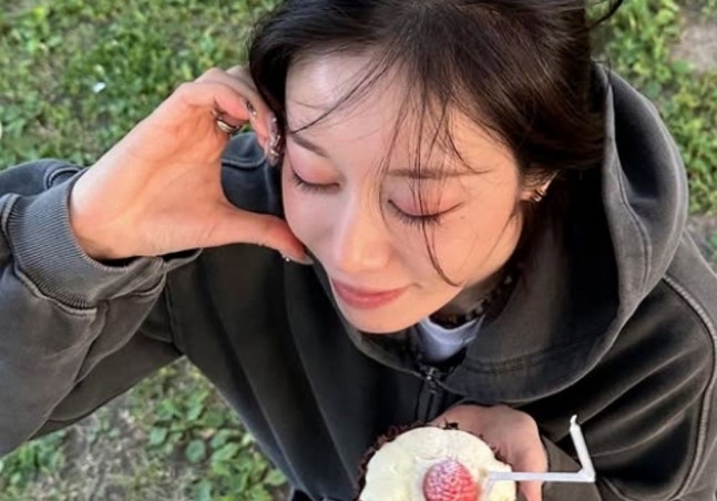 또, 지연은 공원 밴치에 앉아 컵케이크를 손에 들고, 셀카를 촬영하는 등 생일 기분을 만끽했다.