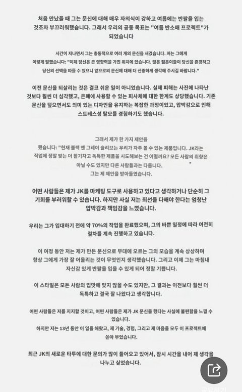 최근 JK의 새로운 타투에 대한 문의가 많이 들어오고 있어서, 잠시 시간을 내어 제 생각을