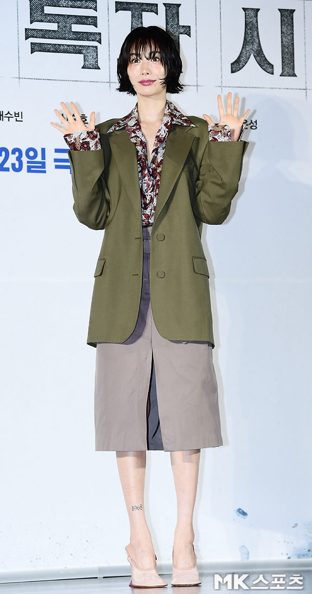 군더더기 없는 차분한 스타일 속에서도 해당 타투는 유독 눈에 띄었다.