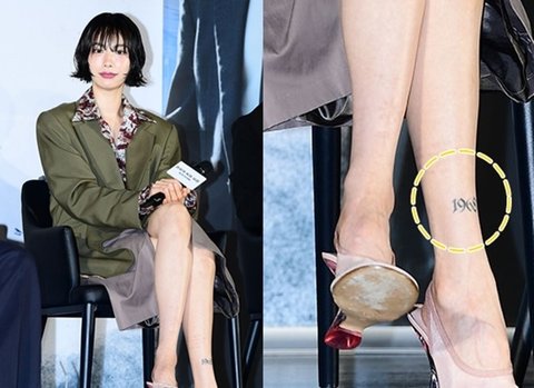 17일 오전 서울 광진구 롯데시네마 건대입구에서 열린 영화 ‘전지적 독자 시점’ 제작보고회에 참석한 나나는 발목에 새겨진 ‘1968’이라는 타투를 드러냈다.