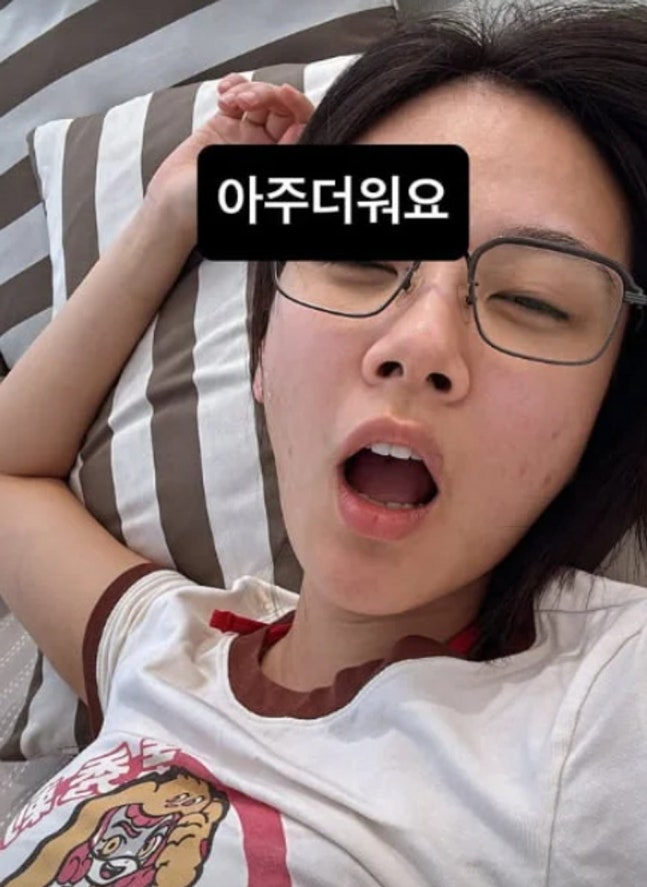 공개된 사진 속 비비는 침대에 누워 살짝 입을 벌린 채 지친 듯한 표정을 짓고 있다. 안경을 쓴 편안한 민낯과 캐주얼한 반팔 티셔츠 차림이 더해져 무대 위와는 또 다른 소탈한 매력을 드러냈다. 특히 하품을 참는 듯한 포즈는 무더위 속 현실적인 피로감을 전해 팬들의 공감을 자아냈다.