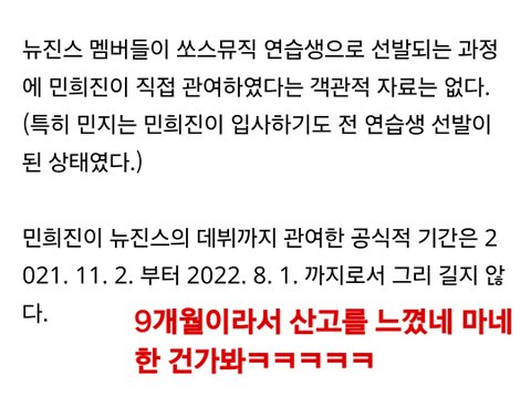 상황을 이렇게 만든건 느그 민희진이고 그런 민희진을 무지성으로 따르고 있는 느그 뉴진스인데요ㅋㅋㅋㅋ