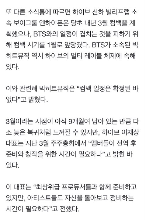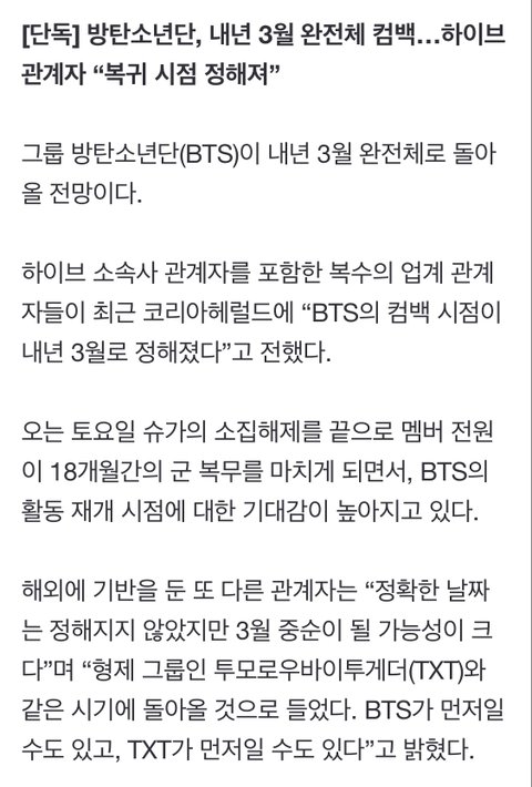 내년 3월 컴백 예정이라는데