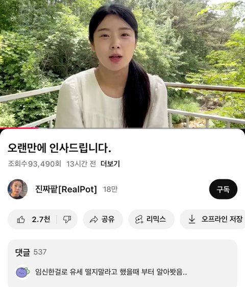 임신한걸로 유난떨지말라? 그 발언할 때 남자 욕 엄청 먹었잖아 그때도 여자분이 오구오구 해쥬ㅓㅆ옦는데 그것보다 더 심한게 여러번 있었겠지? 어휴...
