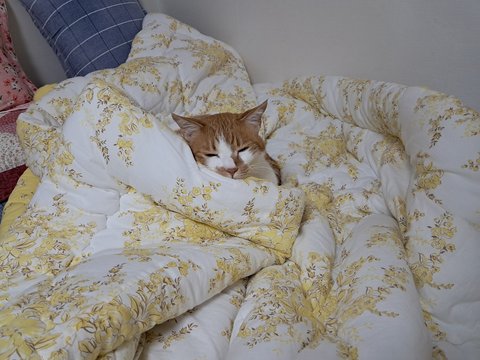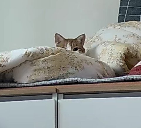 이불위에서 귀만 쫑긋 내놓고 있길래