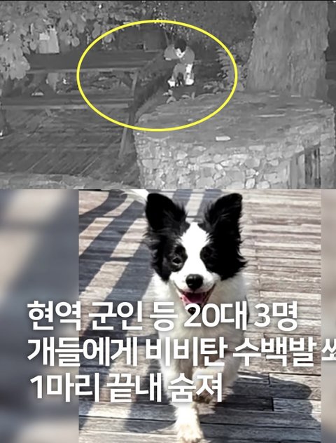 정확히 말하면 비비탄..군인 3명 20대 남자들이 술쳐먹고 가게에 묶여있던 강아지들에게 비비탄총 수천발 난사함. 얼마나 쐈으면 개들 중 한명이 죽었어..그 개들은 목줄에 묶여 피하지도 못하고 그저 남자들이 쏘는 총을 맞고있어야했어..보통 비비탄총 몇십발로 죽지는 않잖아. 근데 얼마나 난사했으면 한 생명이 죽고 두마리는 중퇴에 빠졌을까 ㅈㄴ마음아픔..근데 가해자들 변명이 가관인게 자기 손을 물어서 위협주려고 집주면을 쏜 것 뿐이래ㅋㅋㅋ영상보면 집 안에다가 총을 넣고 난사하더만ㅋㅋㅋ또 이런 사람들 별다른 죄 안받고 넘어갈까봐 너무 두렵다..