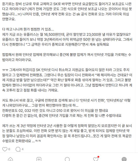 인터넷 약정이랑 사용한 기간을 정확히 아는 것도 소름이긴 하다