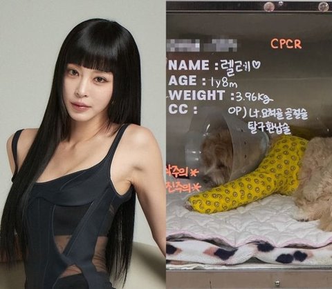 공개된 사진 속 한예슬의 반려견 렐레는 수술을 받은 후 휴식을 취하고 있다. 요척골 골절술, 탈구환납술 등을 받은 렐레는 지친 듯 곤히 잠을 청하고 있다.