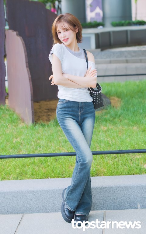 진심 코디 이해 안 감.. 채영이는 채도 높은 색이나 몸매 라인 싹 잡아주는 핏한 드레스 입었을 때가 레전드인데 왜 자꾸 저런 벙벙한 아방..