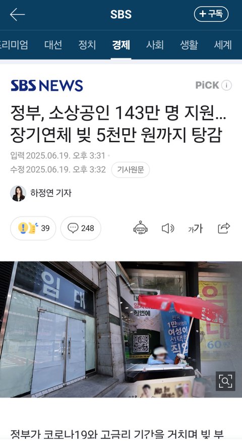 소상공인 143만명 연체 빚 5천만원 까지 탕감.