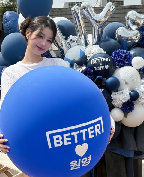 공개된 사진 속 장원영은 선물 받은 풍선과 꽃다발을 배경으로 다양한 포즈를 취하고 있다. 특히 전체적으로 파란색으로 꾸며진 공간과 조화롭게 어우러지는 장원영의 청순하면서도 화사한 분위기가 시선을 끌었다.