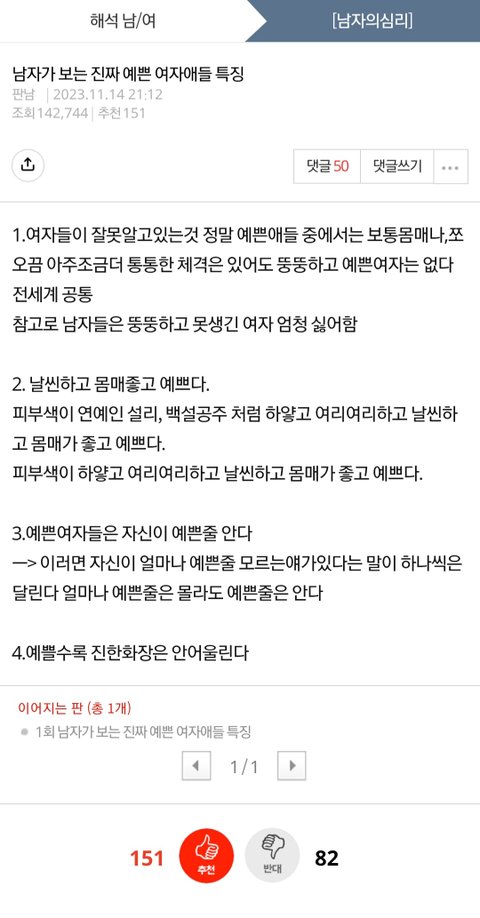 그냥 딱 보자마자 예쁘면 예쁜여자임 뭘 자꾸 따짐