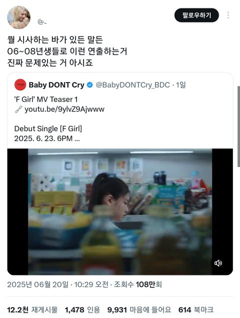 그제 공개된 베이비돈크라이 티저 반응인데 안좋네