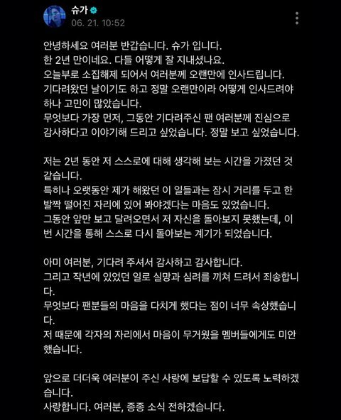 민윤기 위버스 왔다