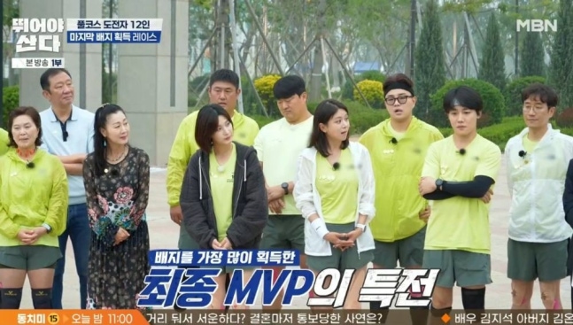 21일 방송된 MBN '뛰어야 산다'에는 션, 이영표, 양세형, 배성재, 심으뜸과 율희, 손정은, 양소영, 방은희, 최준석, 양준혁, 허재 등이 등장했다.