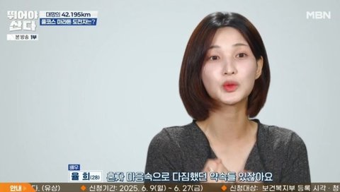 이어 율희, 손정은, 양소영도 등장했다. 양소영은 "벽을 넘어볼 수 있는 경험이 쉽지 않은데, 같이하면 할 수 있을 것 같다"라고 했고, 손정은은 "풀코스 완주가 목표였다. 인생 버킷리스트 같은 거였다"라고 기대했다. 율희는 "혼자 마음속으로 다짐했던 약속들 있지 않냐. '한계를 깨겠다' 같은"이라며 "풀코스 마라톤을 나가지 않으면 완성되지 않는 저와의 약속들이라 도전하게 됐다"라고 포부를 밝혔다.