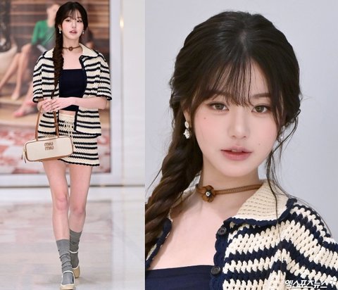 장원영은 크로셰 스타일의 스트라이프 니트 셋업과 튜브톱을 매치해 레트로 감성을 살리면서도 트렌디한 분위기를 완성했다. 여기에 하이 포니테일을 땋은 헤어스타일, 크림 컬러의 토트백, 그리고 회색 삭스와 로퍼 조합까지 더해지며 고급스러운 룩을 완성했다.