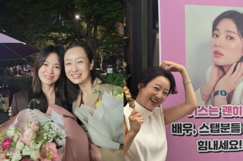 남기애는 “제가 촬영 오는 날에 맞춰서 플러팅 해준 것도 내 이름을 현수막에 쓰고 사진을 실어준 것도. 혜교의 사랑이 느껴져 가슴이 따뜻해집니다”라며 “사랑스러운 딸이에요”라고 애정을 드러냈다.