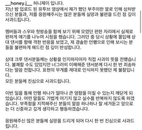 허니제이가 직접 다니카한테 사과하고 다니카가 받아준 듯