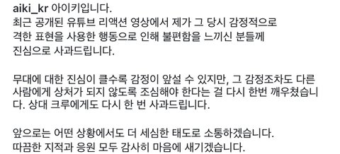 아이키는 정황상 모두에게 그냥 지르고 본 듯 이에 대해 정중히 사과함 ag스퀴드 욕했다고 퍼트리는 건 두 팀한테 안좋으니 그만 하길 커뮤에 아이키가 ag욕했다고 퍼져서 안타까움