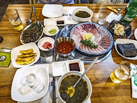 여기는 회를 해초와 함께 김에 싸서 먹으면 맛있다.