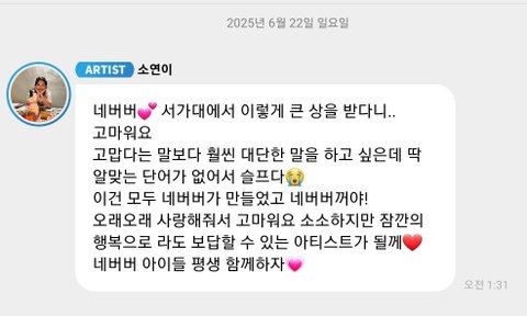 여돌이 받은거라 더 의미가 큰데 혼자만 감사인사x 민니가 제일 먼저 감사하다고 시상식 끝나자마자 인라 킴