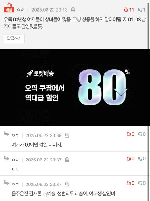 그래서 00년생 여자들 전부 폐급 어쩌고 글 신고했습니다