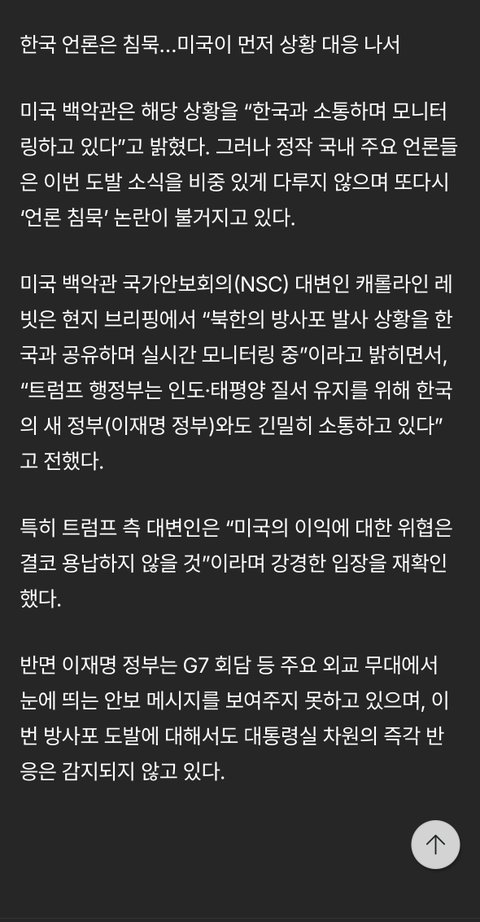 한국군은 훈련용으로 미사일/대포 몇 천발씩 쏜다. 북한이 일상적인 군사훈련만 해도 언론에서 유난 떨면서 정치적으로 이용하는건 20세기에 끝난 수법입니다요. 치매걸린 극우 꼰대들은 21세기에도 6.25 트라우마에서 벗어나질 못해.... 아직도 북한이 대한민국 침략할 급이 되는줄 알더라. ㅋㅋㅋㅋ 작년에 사형수 윤석열이 반역을 저지르면서 북한 국지전 계획했을 때, 북한이 지레 겁먹고 휴전선 근처 도로를 파괴할 정도로, 북한이 남한의 침공을 더 무서워한다. 틀니 똑바로 끼우고, 세상물정 공부 좀 하면서 살아요.