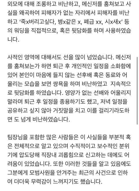 평상시 폐급직원은 후배들한테 쌍욕 박고, 이간질하는걸로 유명했는데
