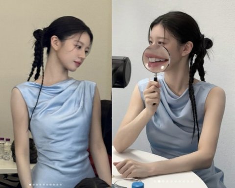 21일 고윤정은 자신의 계정에 블루 드레스를 입은 우아한 모습을 공개하고 이어 입 앞에 돋보기를 대고 우스꽝스러운 빅마우스를 만들어 보여 눈길을 끌었다. 일명 개구기샷으로 보이는 우스꽝 스러운 모습.