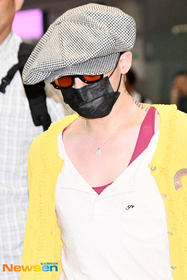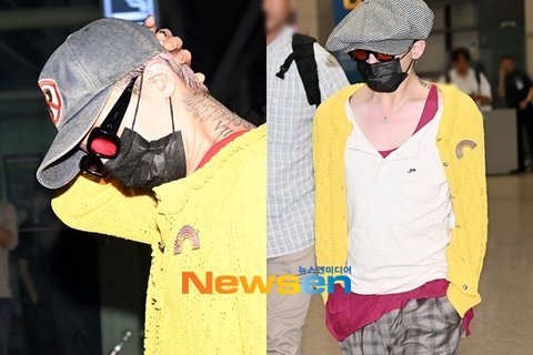 지드래곤이날 지드래곤은 버건디 색 민소매에 화이트 상의, 옐로우 가디건을 레이어드한 독특한 패션으로 눈길을 사로잡았다. 지드래곤은 모자와 선글라스, 마스크로 얼굴을 가렸지만 특유의 강렬한 아우라로 감탄을 자아냈다.