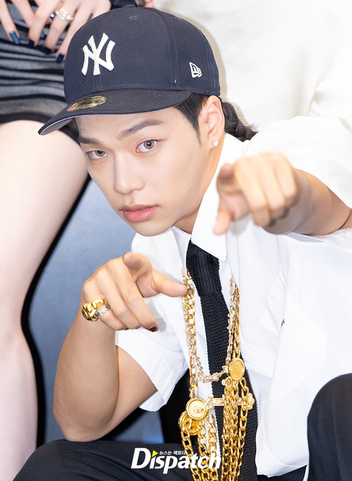 타잔은 화이트 셔츠와 블랙 팬츠 야구 모자로 스타일을 완성했다. 힙합 스웨그로 행사장 분위기를 올렸다.
