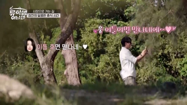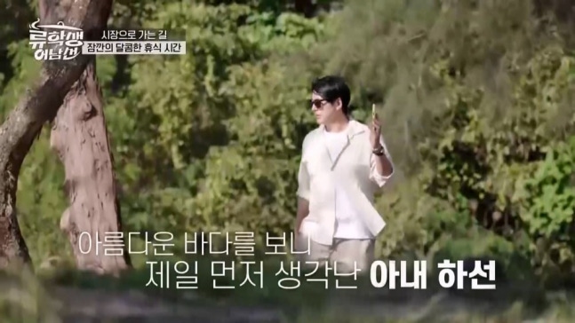 류수영은 영상통화를 켜고 브루나이의 아름다운 바닷가를 공유했다. "현충원 벚꽃이 예쁘다고 해서 갔다 올 것"이라며 가족과 함께 현충원 나들이를 계획 중인 아내의 말에 류수영은 "재밌게 갔다 오쎄요"라고 애교 섞인 콧소리로 '사랑꾼' 남편의 모먼트를 선보였다. 이에 박하선도 "이틀 후면 만나네?"라며 화답해, 두 사람의 애정어린 통화는 설렘을 유발했다.
