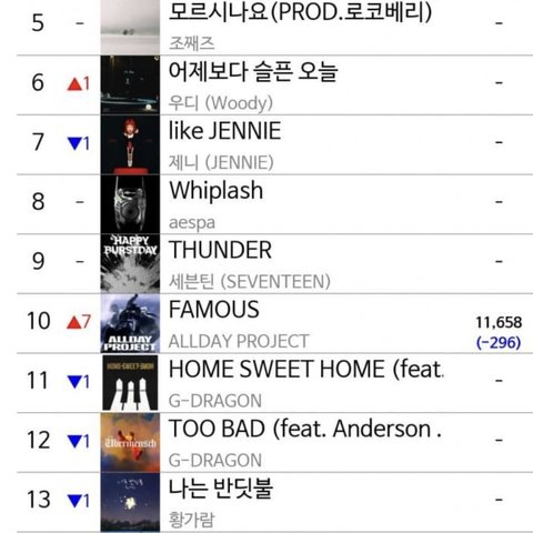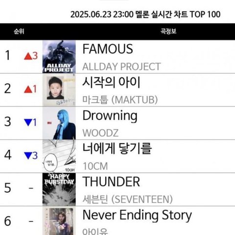 올데이프로젝트 멜론 실차 1위네