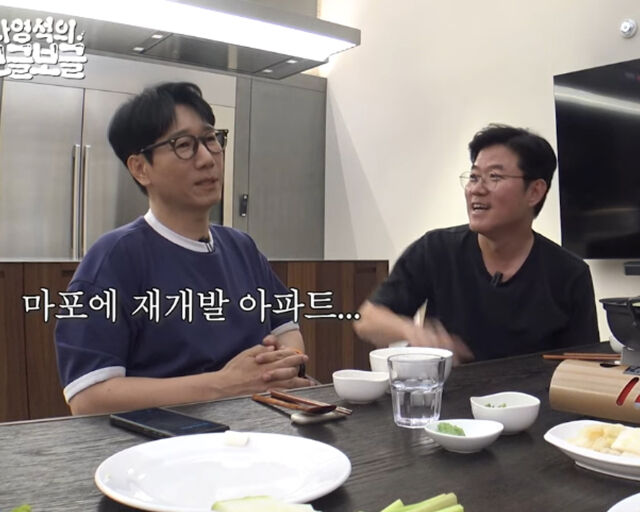 지석진은 "영석이는 기억할지 모르겠지만, 마포의 재개발 아파트…"라고 말끝을 흐렸고 나영석 PD는 놀라 벌떡 일어나 지석진을 껴안았다. 지석진이 "기억나? 너 들어갔니?"라고 물었고 나영석은 "기억나지. 내가 샀는데. 못 들어갔어"라고 웃으며 말해 이우정 작가를 궁금하게 만들었다.