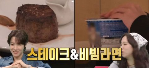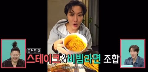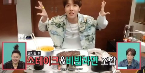 그거슨 바로 bts 정식 ㅋㅋㅋㅋ 스테이크 비빔면 공중파 나왔다 이제ㅎㅎㅎ