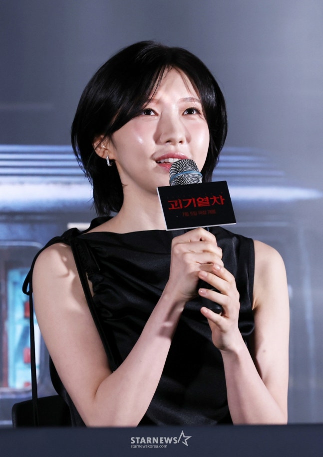 배우 주현영이 24일 오후 서울 용산구 CGV 용산아이파크몰에서 열린 영화 '괴기열차'(감독 탁세웅) 언론시사회에서 질의응답을 하고 있다. /2025.06.24 /사진=김휘선 hwijpg@'괴기열차'를 통해 스크린 첫 주연을 맡게 된 주현영은 "첫 영화의 장르가 공포 영화여야만 한다는 생각을 했던 건 아닌데 감사한 기회가 찾아오게 됐고, 기회를 잡아야만 했다"고 밝혔다.이어 "공포 영화를 좋아했는데 어릴 때부터 부모님께서 정서에 좋지 않다고 보는 걸 뜯어말리셨다"며 "그럼에도 공포물을 보며 스스로 상상력도 풍부해졌다고 생각하고, 영감을 얻었다고 생각한다. 배우를 꿈꾸면서 낙이 돼준 공포물로 영화를 처음 찍게 됐다는 것 자체로 고민할 필요가 없었다. 바로 뛰어들어 보고 싶다는 생각을 했다"고 말했다.