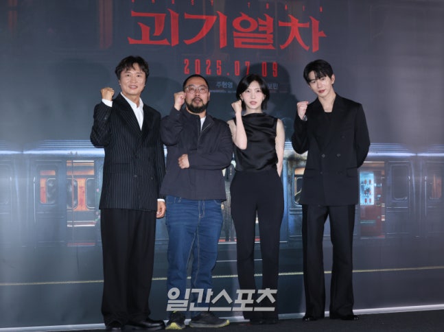 배우 전배수, 탁세웅 감독, 주현영, 최보민이 24일 오후 서울 용산구 CGV용산아이파크몰에서 열린 영화 '괴기열차' 언론배급시사회 및 기자간담회에 참석해 포토타임을 갖고 있다. '괴기열차'는 조회수에 목마른 공포 유튜버 다경(주현영 분)이 의문의 실종이 연이어 발생하는 광림역의 비밀을 파헤치며 끔찍한 사건을 맞닥뜨리게 되는 미스터리 호러 영화다. 오는 9일 개봉. 서병수 기자 qudtn@edaily.co.kr /2025.06.24/
