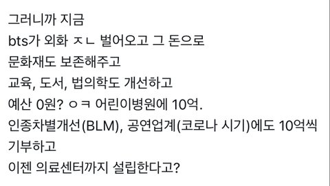 어떤 케팝 가수가 사회적 공헌을 이렇게 많이 함 추가로 더 덧붙이자면 럽마셀 캠페인으로 회사랑 같이 대략 70억 기부했고 취약계층 청각장애아동 소외계층아동 수해 산불 세월호 항공참사 전우사랑기금 난치병환자 유기견센터 후원까지 어려움이 있는 곳이면 구석구석 다 찾아가서 도움 줌 심지어 다 못쓴 것도 있고 내가 모르는 부분도 더 있을 거임 이런 가수를 왜 후려치냐고 왜