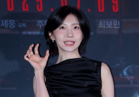 [서울=뉴시스] 김혜진 기자 = 배우 주현영이 24일 오후 서울 용산구 CGV 용산아이파크몰에서 열린 영화 ‘괴기열차’(감독 탁세웅) 언론시사회에서 포즈를 취하고 있다. 2025.06.24. jini@newsis.com