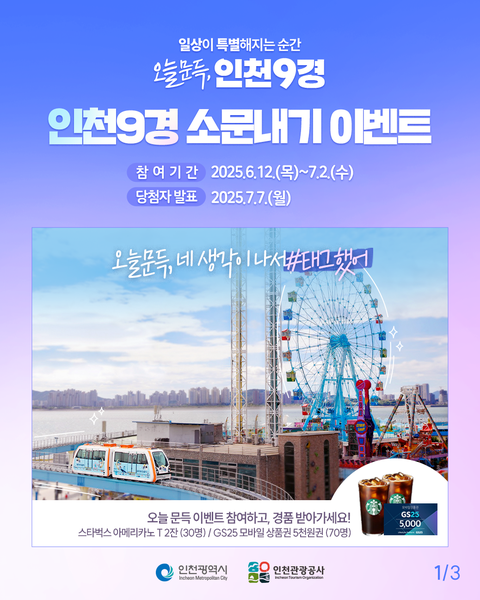 인천9경 소문내기 이벤트, "오늘 문득, 네 생각이 나서 #태그했어"✨