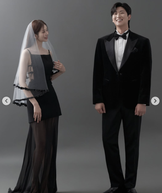 공개된 화보 속 서동주는 블랙 시스루 드레스에 베일을 쓰고 우아한 자태를 뽐냈으며, 예비신랑은 블랙 턱시도로 훈훈한 매력을 더했다. 특히 두 사람이 다정하게 포옹하며 환하게 웃는 모습은 예비 부부의 설렘 가득한 분위기를 전하며 시선을 사로잡았다.