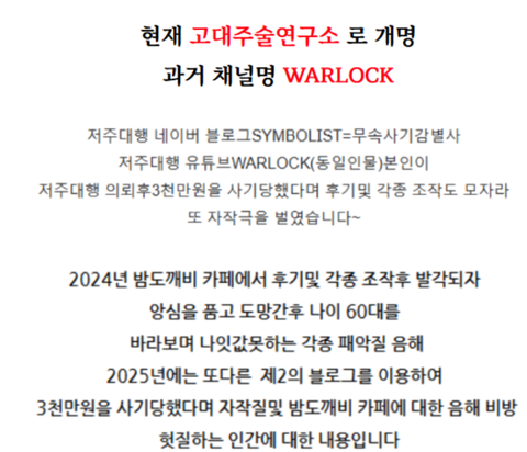 올해는 무속사기감별사라는 블로그로 “제가 3천만 원 사기당했습니다” 자작극 진행