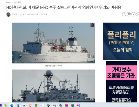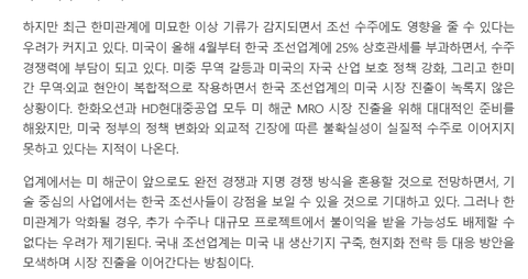 한미관계영향으로 HD현대.한화,미해군 MRO수주실패