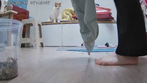 우연히 홈캠을 보다가 그동안 움직임이 감지된 찰나의 모습이 실시간으로 저장되어 있었음.