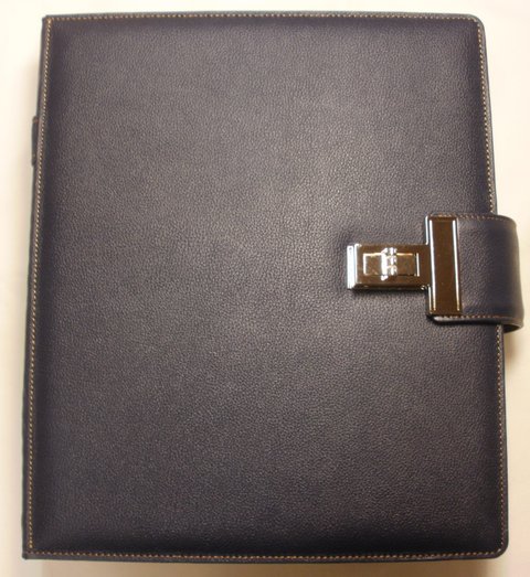 네이비 컬러 오플 무늬 엠보싱 가죽으로 제작한 악보 케이스(악보북)입니다.(마디샤가죽공예)