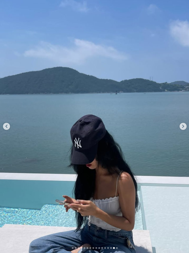 사진 속 화사는 휴양지에서 즐거운 시간을 보낸다. 아찔한 비키니룩으로 멋을 내는가 하면, 블랙 드레스로 아름다운 자태를 뽐낸다. 만족스러운지 거울에 비친 자신 모습을 카메라에 담기도 한다. 또 차안에서 무심하게 카메라를 응시한다. 지인들과 함께 즐거운 여름을 보내는 듯하다.