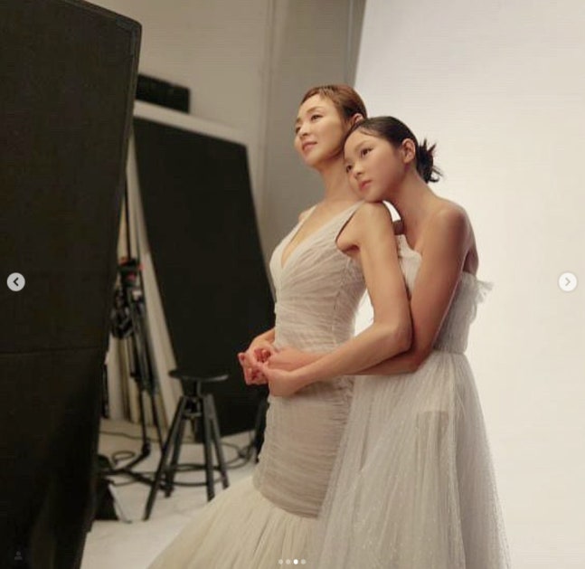 공개된 사진에서 추사랑은 엄마의 옆에서 하얀 드레스를 입고 포즈를 취했다. 모델인 늘씬한 엄마의 옆에서도 크게 차이가 없는 훌쩍 자란 키와 엄마를 빼닮은 미모를 자랑하는 모습이다.
