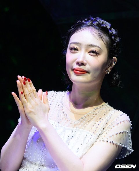 [OSEN=이대선 기자] 26일 오후 서울 대학로 NOL 유니플렉스 1관에서 뮤지컬 프리다 프레스콜이 열렸다.뮤지컬 ‘프리다’는 불의의 사고 이후 평생 고통 속에서 살면서도 이를 예술로 승화시키며 삶의 환희를 잃지 않았던 ‘프리다 칼로’의 마지막 생애를 액자 형식으로 풀어낸 쇼 뮤지컬이다.배우 김히어라가 박수를 치고 있다. 2025.06.26 /sunday@osen.co.kr